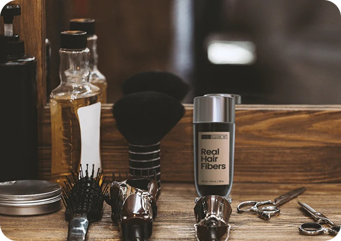 Hair Illusion fibers are made from 100% natural hair fibers — the same hair on your head. While most hair concealers are powder-based and have a paint-like texture, Hair Illusion is meant to work with your natural hair. Our products are made from 100% real hair fibers, versus the dyed cotton and rayon in most OTC products.